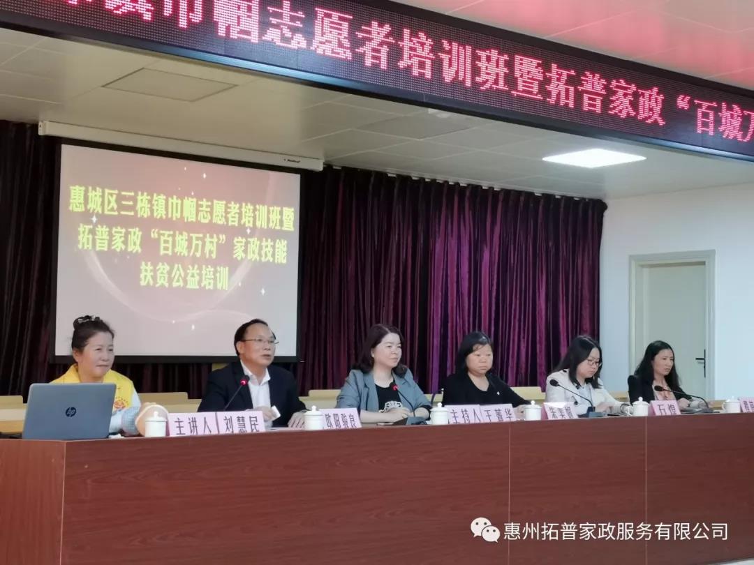 出席本次培訓活動的主要領導包括,惠州市婦聯宣傳發展部副部長朱美娟,三棟鎮副鎮長王菁華,惠城區婦聯主席石煌,惠州拓普家政服務有限公司董事長歐陽駿良,惠州城市學院教育學院副院長程茵茵。
