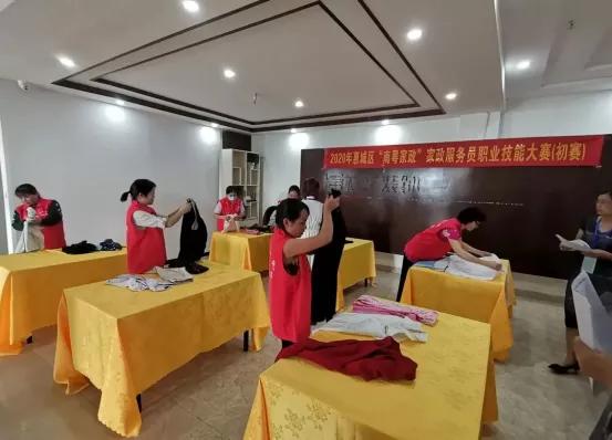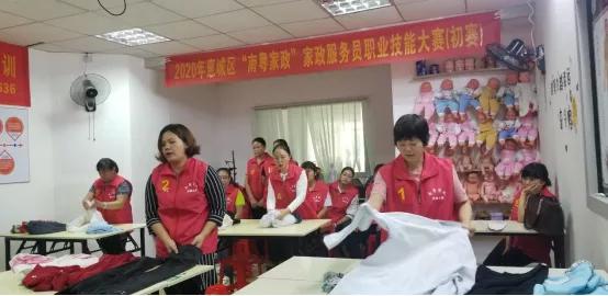 2020 年惠城區“南粵家政”家政服務從業人員職業技能競賽(預賽)分別在惠州東平賽區、下埔賽區、江北賽區、河南岸賽區成功舉行。參加初賽的選手共117人,分別來自市區各家政行業的從業人員。