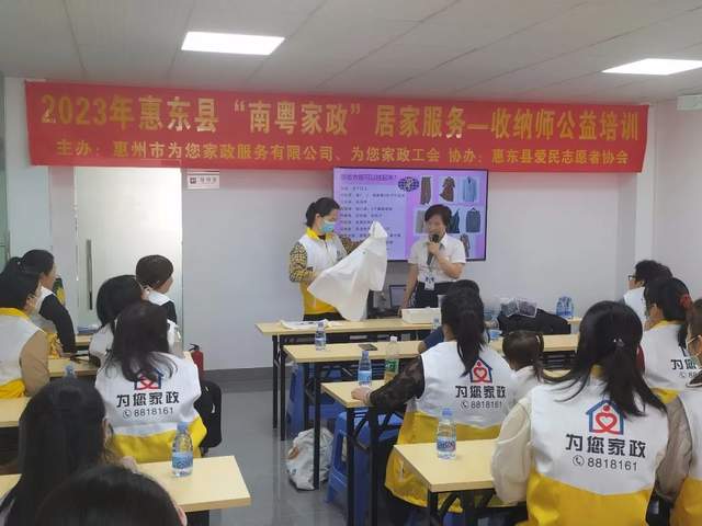 5月13日,由惠州市為您家政服務有限公司主辦,惠東縣愛民志愿者協會、惠州拓普家政服務有限公司、惠州市惠城區拓普家政職業培訓學校協辦的2023年惠東縣“南粵家政”居家服務-收納師公益培訓順利舉行。
